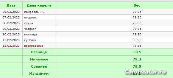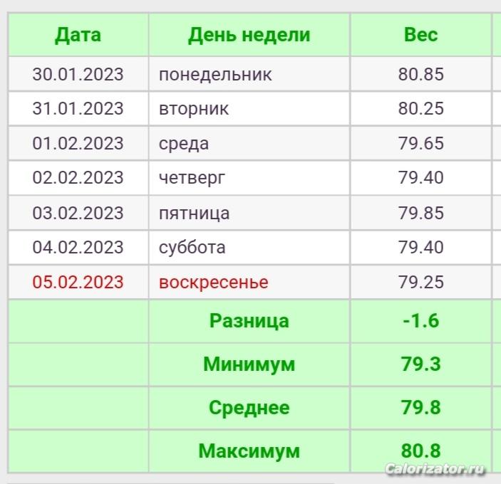 21.01.20 (107,2 кг) - 21.01.21 (77,1 кг) МИНУС 30,1 кг *** 21.01.21 (77,1 кг) - 21.01.22 (75,5 кг) МИНУС 1,6 кг *** 21.01.22 (75,5 кг) - 21.01.23 (80,1 кг) ПЛЮС 4,6 кг